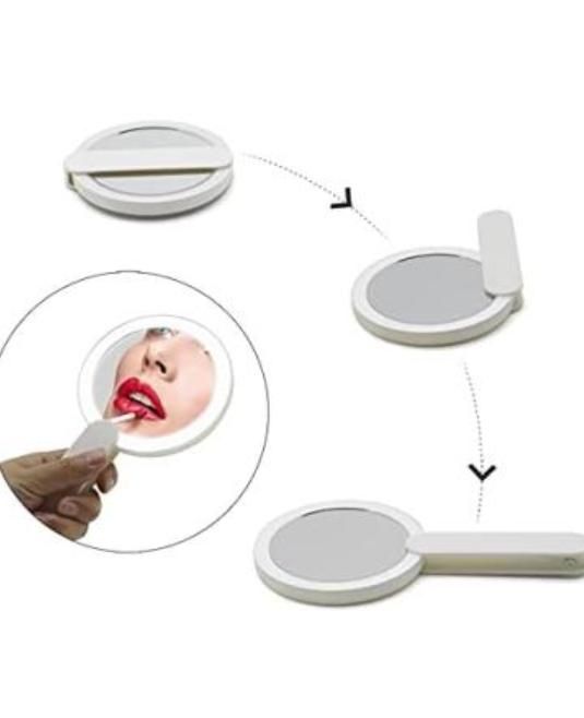 Product Name: LED Handheld Cosmetic-Makeup Mirror Package Contains: It has 1 Piece Of LED Handheld Cosmetic Mirror Color: As per availability Material: Plastic/GlassMounting Type: Tabletop MountSpecial Feature: Adjustable, Lightweight, Portable, RechargeableCombo/Set Of: Pack of 1 Weight: 336gm